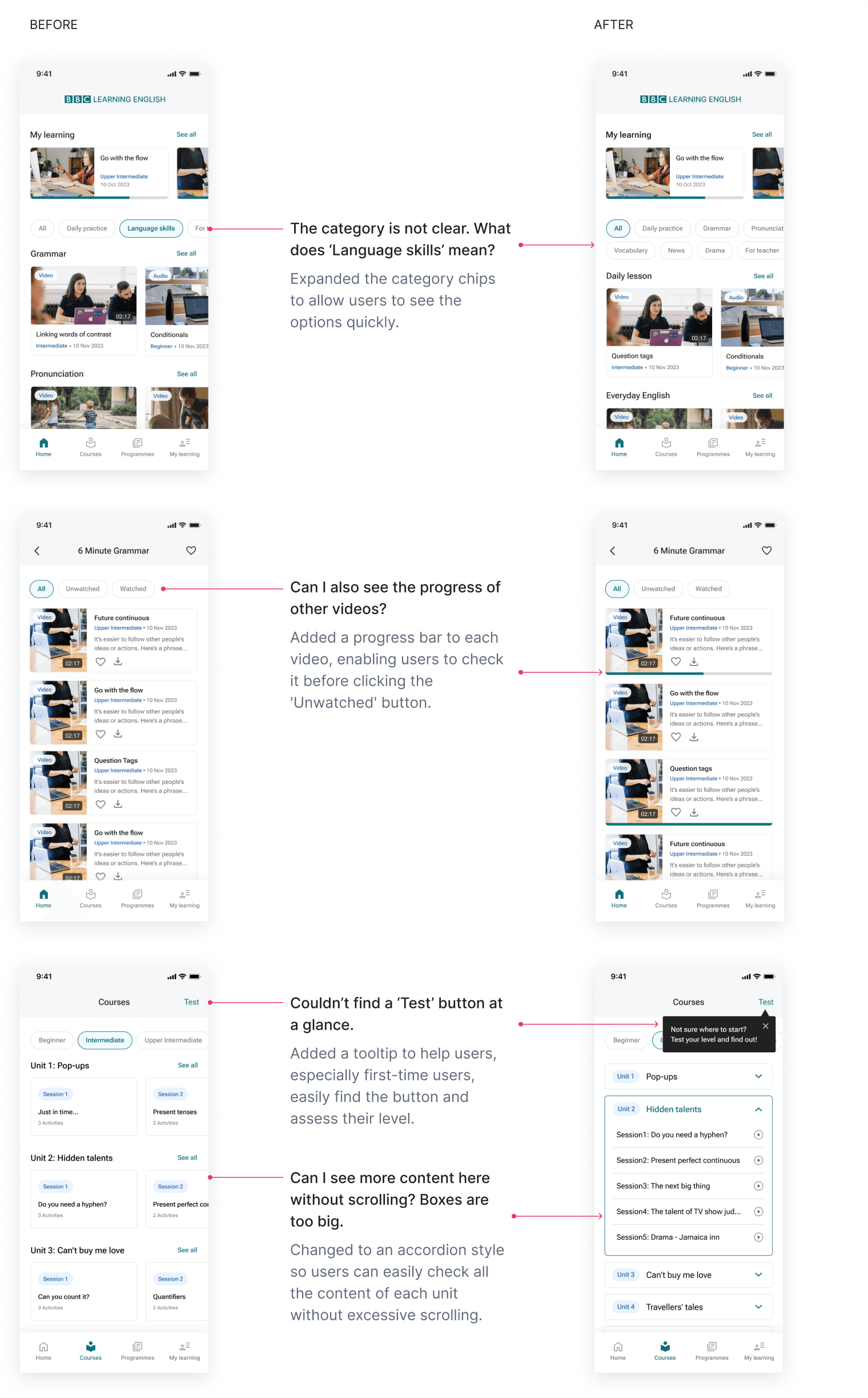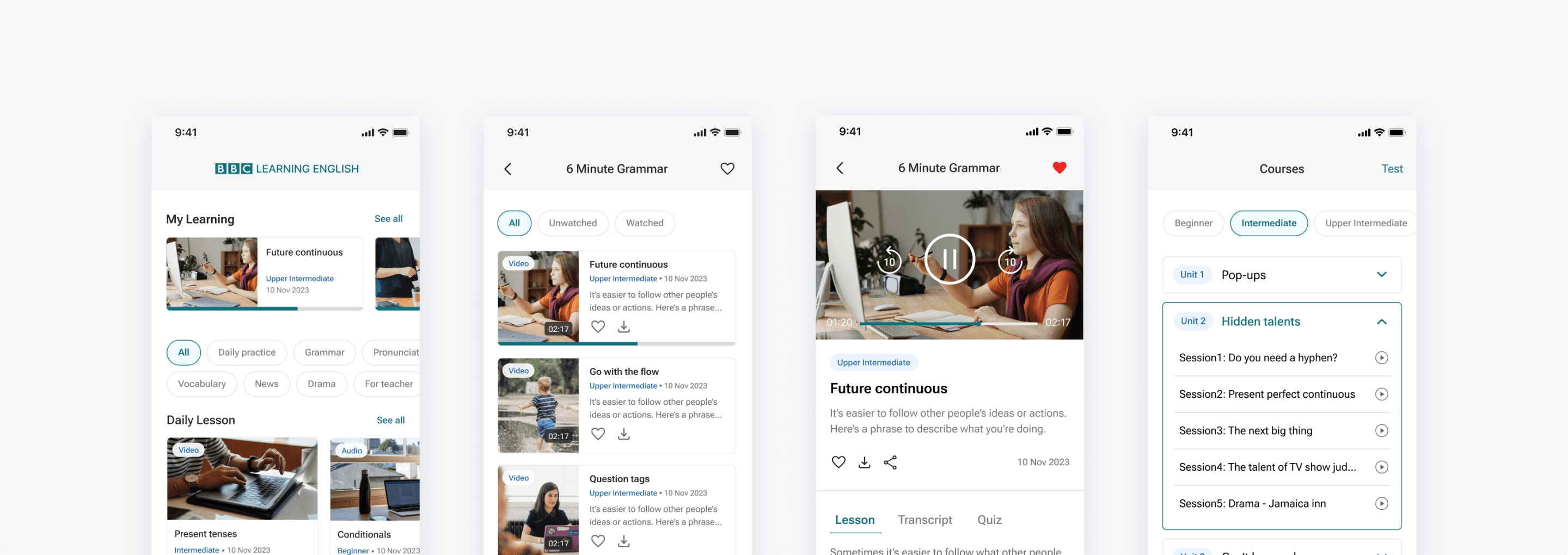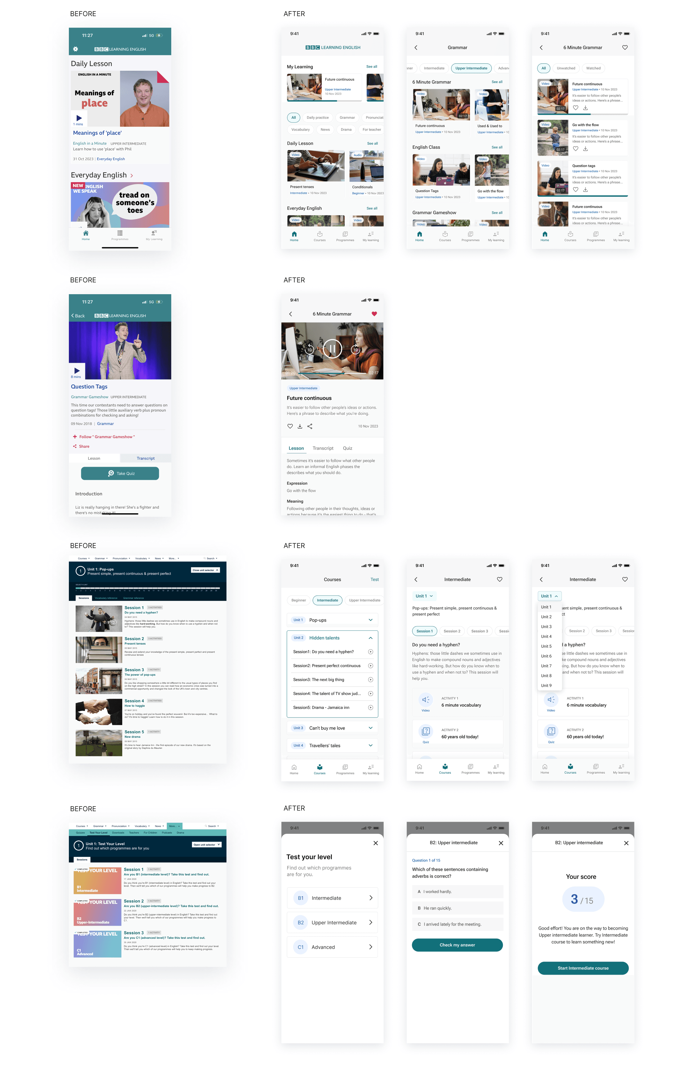 *This is a conceptual case study with no affiliation to BBC. BBC Learning English, part of the renowned British news channel, provides high-quality free content through its website and app. I chose to redesign it due to the potential for improving the app's user experience.